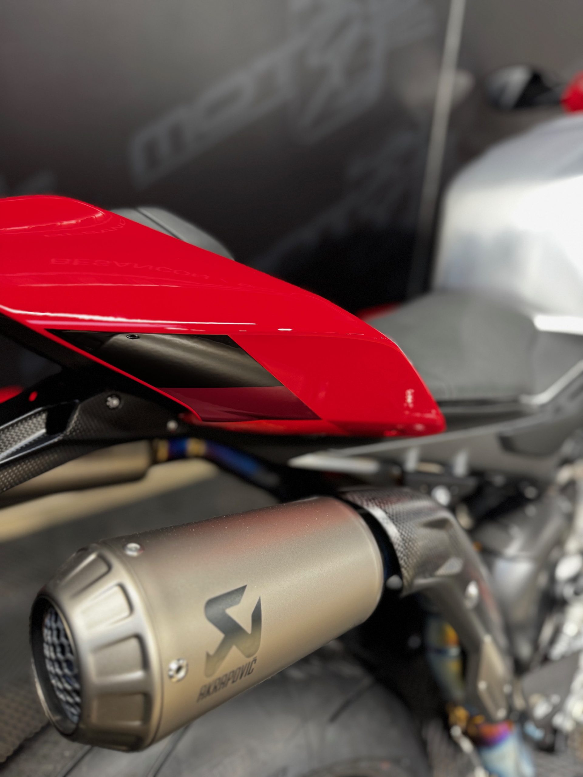 – Pièces carbones DUCATI Performance : Garde boue avant, protection de bras oscillant, ailerons, couvre batterie, guide chaine, protection cadre, protection de carter.